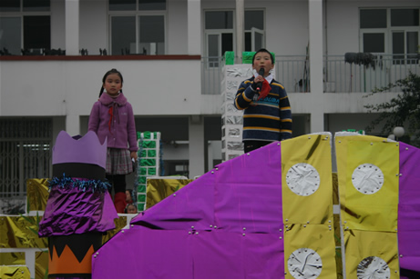31日上午9:00活动在欢快的迎新年的音乐声中拉开了序幕,首先是全体孩子的Crazy English,孩子们随着英语歌曲的节拍边唱边跳,然后学校领导为去年的奖学金获得者颁发了奖金和证书,接下来由孩子们中选出的志愿者扮演的English City城堡卫士、环保卫士、形象大使等陆续登台亮相并发表宣言,English City的“堡主”接过校长和家长代表共同授予的代表游园活动开始和新一年开始的金钥匙,礼花齐放,游园活动开始了,孩子们和自己的家长一起,参加了丰富多彩的英语游园活动。在快乐的活动中孩子们学习了英语,和家长增进了感情,家长们则在与孩子活动的过程中找到了童年的回忆,与孩子共同体会了成长的快乐。