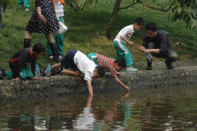 我们三二班及家长一行近百人,一路欢歌笑语来到了风景如画的石象湖。
