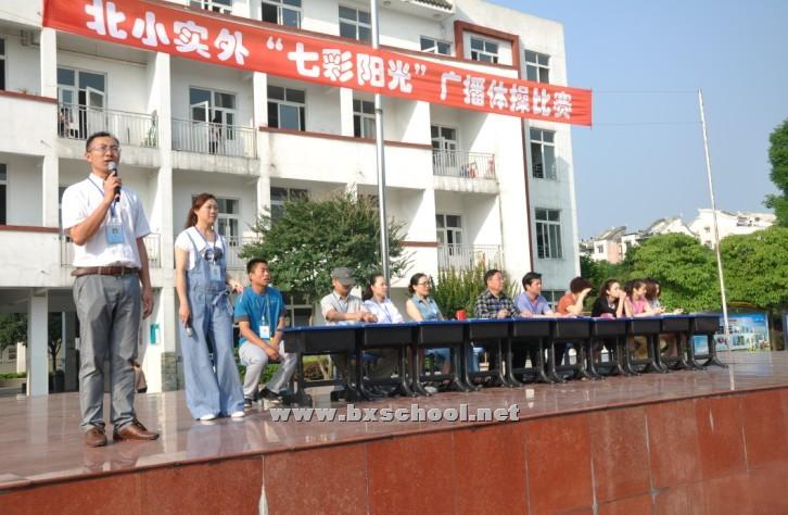 为落实阳光体育活动,树立“健康第一”的思想,规范学生的广播体操动作,提高广播体操的质量,2013年5月21日,北小实外举行了2013年“七彩阳光”校园广播体操比赛。全校31个班级参加了比赛。 这次广播体操比赛引起了全校师生的极大重视,各班班主任老师和体育老师密切配合,根据比赛要求和比赛内容,积极组织训练,充分利用体育课及课外活动时间,让每一位同学掌握动作要领、节奏和力度要求。 比赛过程中,各班同学在班主任老师的带领下,个个精神抖擞,充分展示出班级的最佳风貌。评委老师们本着“公平、公正、公开”的原则从进退场、集体精神面貌、集体动作节奏、队列队形、集体创新展示等方面对各班进行考评。学生们在强劲动感的乐曲声中,尽情地挥洒着激情,展示着他们特有的阳光、健康、活泼、向上的精神风貌。 最终,通过同学们的努力,获得第一名的班级分别是1.2、2.3、3.5、4.3、5.5、6.1班;获得第二名的班级分别是1.1、2.1、3.1、4.1、5.4、6.4班;获得第三名的班级分别是1.4,2.2,3.3,4.2,5.1,6.2班。 通过此次比赛,同学们对广播体操的作用有了更深的认识,规范了动作,提高了广播体操的实效性,同时也培养了学生的团结合作、拼搏进取的精神。