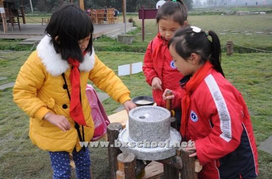 为了弘扬传统文化,带领学生感受高科技农业,培养热爱自然,热爱生活的意识,我校于11月13日起,分批次组织学生到都江堰市高科技农业园进行了农耕生活的体验活动。 这次活动内容丰富,让孩子亲自动手除草、了解农事、推石磨、磨豆浆、喂羊、参观各种不同的蔬菜等。孩子们认真、好奇的听讲解,提问题,并且自己动手感受农耕生活。 对于现在的孩子,这是一次难得的体验活动。许多同学好奇地看着各种不认识的蔬菜,笨拙地在田地里干着农活,虽然手脏了,走累了,他们仍然积极认真地感受着他们从未感受过的农耕生活。 通过这次秋游活动,同学们不仅感受了大自然,学习到了很多农业方面的知识,同时也了解到了粮食的来之不易。