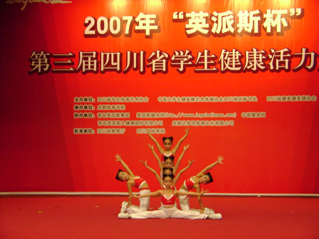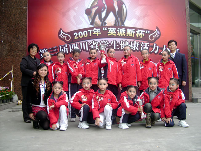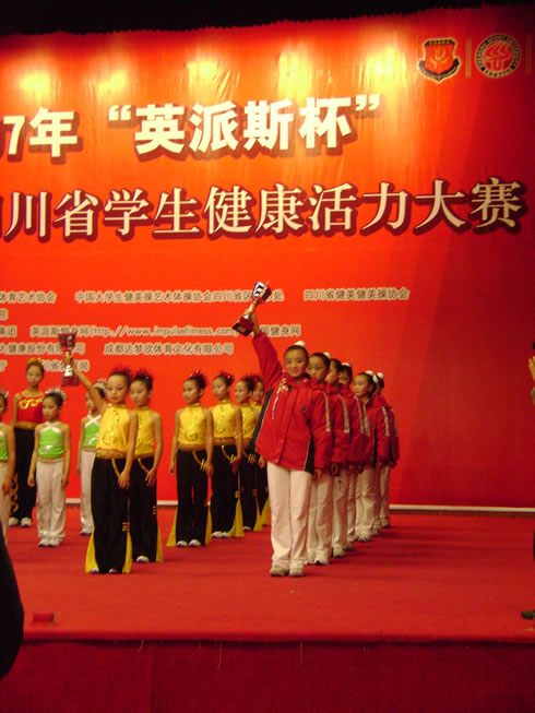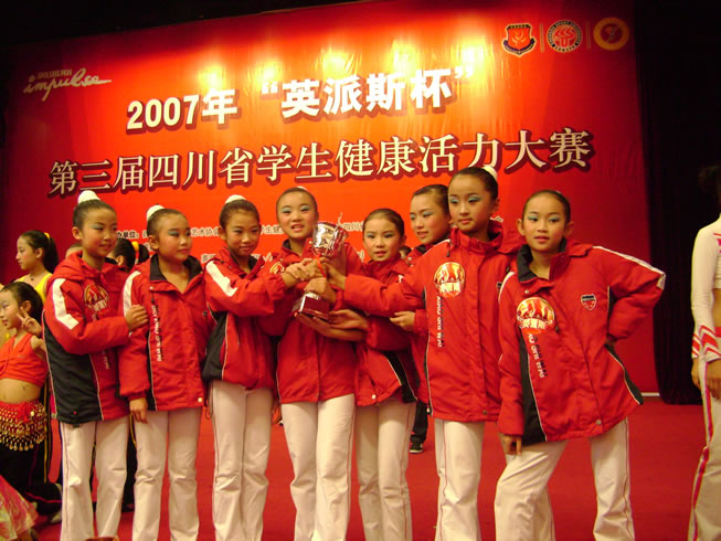,在四川省第三届学生健康活力大赛上,我校健美操队获得少儿黄金组第一名和少儿三级第二名的优异成绩。此次比赛全省200多支队伍参加比赛,我校获得3个团体奖中的“最佳明星队”,邓琳同学获得5个个人奖中的“明星运动员” 称号。少儿黄金组受大赛组委会邀请,参加了晚上颁奖大会的汇报演出,部分队员还接受了四川电视台的采访。