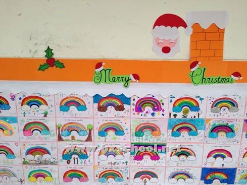 12月13日,我校一年级举行了I can sing a rainbow的英语活动。一年级的孩子们刚刚踏进英语课堂,正享受着英语学习给他们带来的乐趣。在即将完成一学期英语学习的时候,他们高唱着英语歌曲“I can sing a rainbow”,迎来了属于他们的第一届英语节。 孩子们热爱着英语,但他们只能用图画的形式来表达对英语的热爱。他们用自己的想法和创意画出了每个人心中不同的“rainbow”。在这个过程中,孩子们也对各种颜色的知识进行了巩固。每个孩子都认真完成了自己的作品,他们欣喜地看着美丽的展示墙,享受着英语学习给他们带来的快乐。