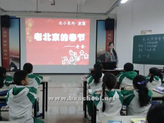 10月22日上午,在都江堰市三年级教研活动中,我校语文教师梁愿代表北小实外执教了《老北京的春节》,这是一节成功的研究课,赢得了与会老师众多的好评。 在课堂中,梁老师尊重学生,循循善诱,整个学习过程体现出学生从不会到会的过程。教研室老师肯定了在这节课中呈现出的四大亮点:第一是对教材解读到位,立足语言训练;第二是教学目标定位准,重难点突出。第三是教材处理巧妙,突出了语言训练。第四是关注学生思维发展,提升学生语用能力。梁老师课堂教学的成功体现了我校集体教研的智慧,群策群力的力量。这节课,给听课的教师提供了一个很好的学习交流的机会,同时也开拓了教师教学思路。(杨凤娟)