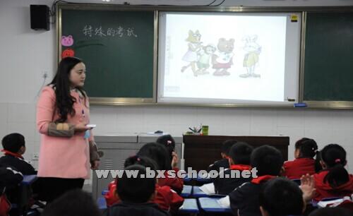 图为语文老师黄希为在2.4班执教《特殊的考试》 指导教师:蒲建蓉
