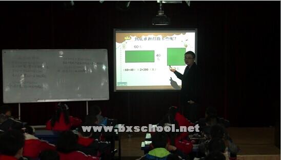 图为郑爽老师在3.1班执教《长方形的周长》 指导教师:杨菊花