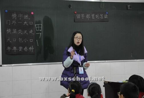 图为赵蕾老师在4.4班执教《田字框》 指导教师:王正国