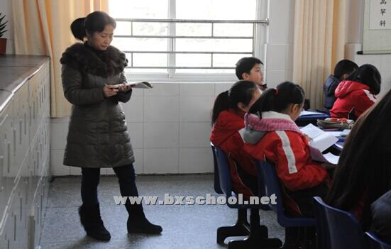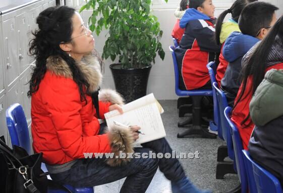 图为教研员任老师在听语文老师伍建强上课
