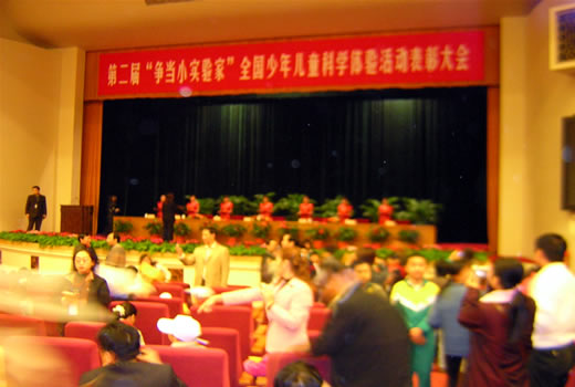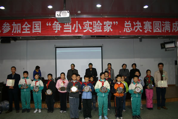10月的北京秋高气爽,全国22个省市的500余名小选手代表近10万参加此项活动的青少年齐聚北京,参加第二届全国总决赛。北街小学和北街小学实验外国语学校选派了15名学生参加生物和物理两门学科的角逐。10月22日上午8时30分,选手们进入考场,分别参加笔试和实验操作两轮现场比赛。15名选手不畏强手,敢打敢拼,凭借扎实的科学知识和娴熟的实验操作技能,技惊赛场,成绩卓越,获得5金4银6铜的好成绩,为此我校教师罗建和陈斌兵获得了“优秀科技辅导员”荣誉称号。颁奖大会在雄伟的人民大会堂举行。共青团中央、教育部、科技部、中国科协、中国科学院等有关负责同志出席表彰大会并向小选手颁奖。团中央书记处书记杨岳致词鼓励孩子们再接再厉,勇攀科学高峰。我校教师罗建还代表获奖教师上台领奖。新华社、解放日报等多家新闻媒体作了相应的报道。
