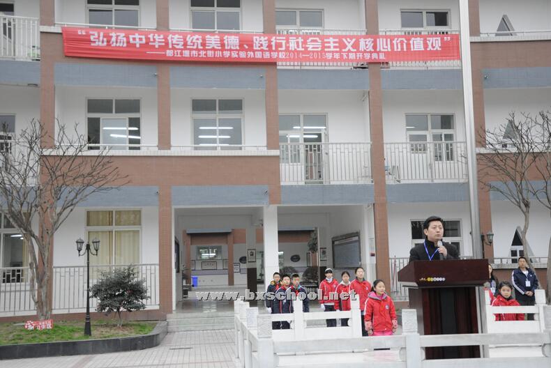 弘扬中华传统美德,践行社会主义核心价值观——都江堰市北街小学实验外国语学校2015年春季开学典礼 |