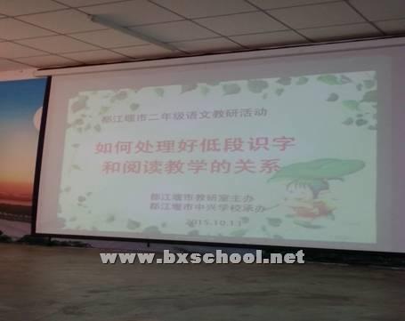 为搭建城乡小学语文教学交流平台,打造高效语文课堂,促进教师专业成长,10月13日上午,都江堰市小学语文城乡 “同课异构”交流活动在都江堰市中兴学校举行。都江堰市中小学教研室语文教研员宋桂芳老师主持此次培训会,北小实外二年级语文组全体教师参加了此次活动。