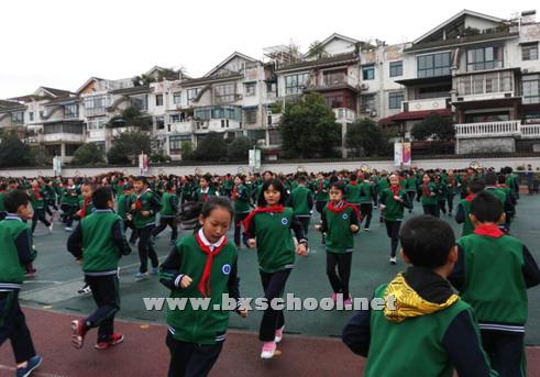 2015年10月下旬北小实外校学生冬季长跑活动正式拉开序幕,全校一至六年级共32个教学班级,1480余名同学、200余名教职员工全部积极地到运动场上进行长跑活动,尽享阳光。 为积极响应贯彻《中共中央国务院关于加强青少年体育、增强青少年体质的意见》精神为宗旨,以宣传实施《全民健身条例》为契机,根据四川省教育厅颁布的《关于开展第六届全国亿万学生阳光体育冬季常长跑活动的通知》,此次活动将从十一月中旬一直延续到明年四月份,本学期开始,我校体育组对我校的大课间活动就做出了相应的调整,为了让学生的锻炼时间得到充分、有效,现在除了每天常规的《七彩阳光》广播体操和我校特色项目少儿健身操之外,还在两套操做完之后加入了跑步,为此,我校体育组老师调整了全校学生的站位,便于做完操之后能跑步 。 希望通过这次活动能培养同学们热爱体育、崇尚运动的健康观念和良好习惯,逐步形成强身健体、阳光运动的校园长跑活动氛围和文化,不断提高学生身体素质和坚强忍耐的意志品质。