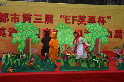 4月5日,北小实外校经过短短的三周策划,排练的英语童话剧《小红帽》参加了成都市“英孚杯”英语童话剧比赛,在数十个参赛学校中获成都市二等奖。