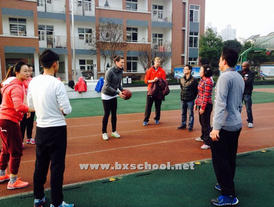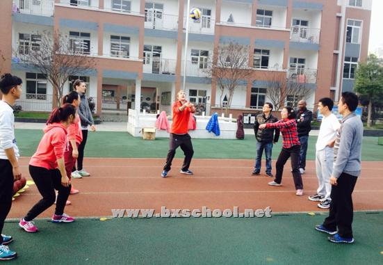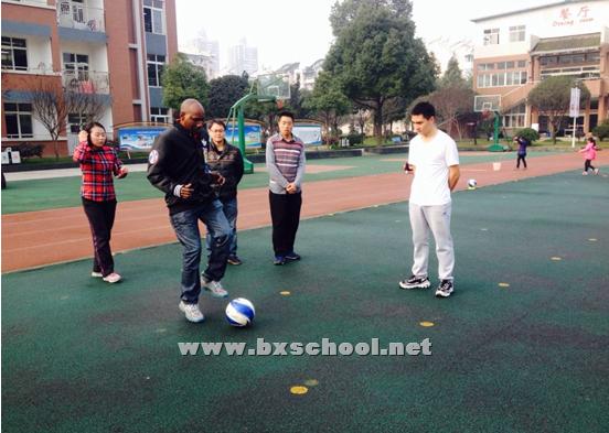 2015年12月10日上午,我校体育教师与外籍教师在操场开展体育技能研究。此次研究活动围绕足球、排球、篮球三大球类开展。 首先由我校体育教师进行了篮球、足球、排球的体育技能展示,随后由篮球专业的外籍教师与体育教师探讨篮球传接球的基本要领,如单手传球、双手胸前传接球等,并一起进行互动绕8字的传接练习;接着是探讨研究排球的正面双手下手垫球、正面双手上手传球等;后来探讨了足球脚内侧的传球和停球的技术动作以及如何绕着标志桶都进行了互动练习。