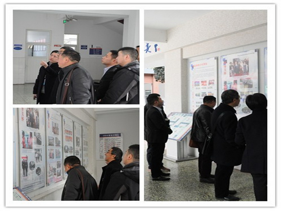 学监一行首先在马校长等行政一班人员的陪同下参观了我们的校园文化。校园里,无论是操场周围古韵十足的汉字演变简史墙,还是后花园处处彰显的儒家文化与书法巧妙结合的墨韵书香,甚或是艺术楼下提笔可练的书法水写台,都引起了客人们浓厚的兴趣,处处飘溢传统文化气息的书画特色,受到客人们的声声赞誉。