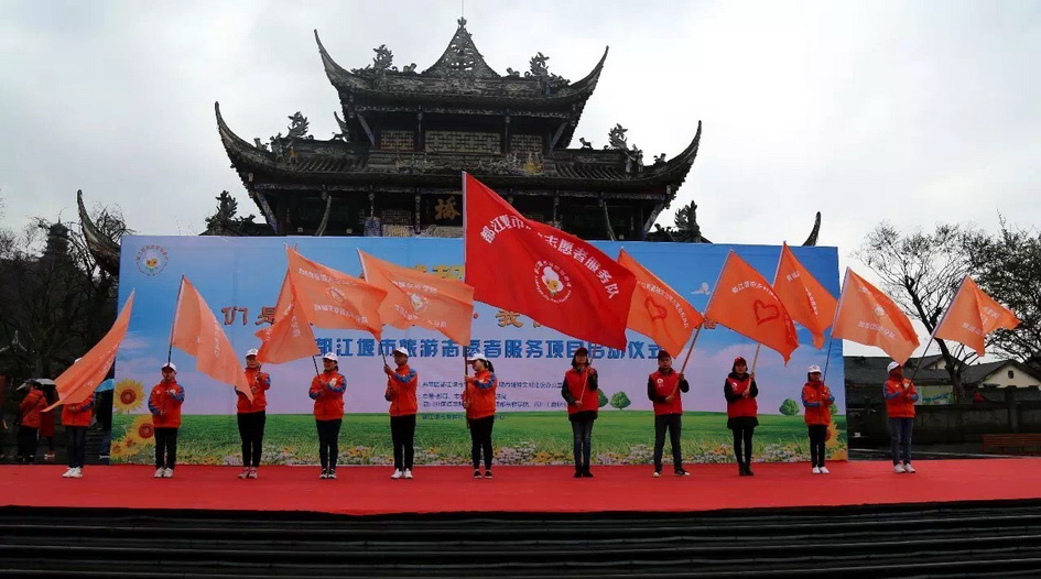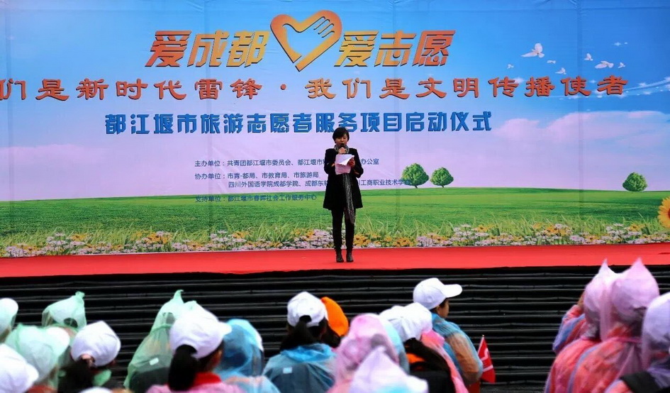 3月5日是全国第54个“学雷锋纪念日”,也是第18个“中国青年志愿者服务日”。在这个特殊的日子里,我校8名学生代表参加了由共青团都江堰市委员会、都江堰市文明办主办、市教育局等单位联合举办的 “爱成都,爱志愿”旅游志愿者服务项目在都江堰南桥广场的启动仪式。