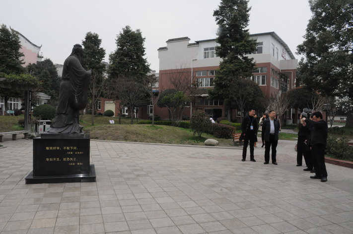 康定教育考察团一行来到学校后就深入教学区、食堂、宿舍、艺术大楼等处进行认真、全面、细致的参观和了解。我校马校长、胡校长和于主任一边带领来宾参观,一边与来宾进行了交流,介绍我校的办学理念、办学规模、校园建设、校园文化等,重点介绍了我校的管理机构架设特色和在课程改革方面的举措和实施力度。考察团一行认真听取了马校长的介绍,对我校处处渗透“教育服务”的理念给予了高度赞赏。