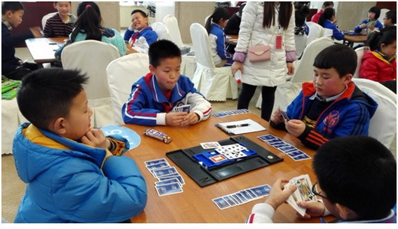 为了开发学生的智力、提高记忆力、增强逻辑思维能力、培养团队合作精神,我校于开学初期在四年级进行了桥牌普及,并在各班选取4-6名学生组成小队参加了为期一个月的8次桥牌集训。