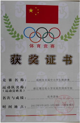 我校获得2017年成都市首届中小学生桥牌赛优秀团体奖
