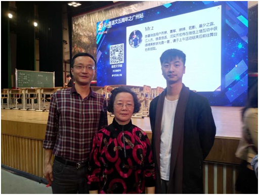 李坤、伍建强和语文特级教师张赛琴合影留念