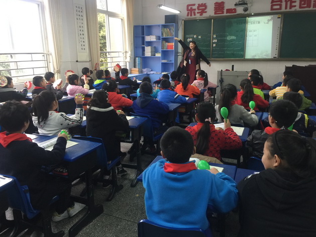 这首乐曲结构为在再现的三段体,相对于小学四年级学生来说是比较复杂的。向老师在通过观看水乡风景视频、整体聆听乐曲后,采用主题分析法引出引子部分,然后进行情绪、意境等音乐要素的聆听;接着对比聆听第一乐段和第二乐段:曲笛演奏的第一乐段速度稍慢、节奏稀疏、旋律悠扬,通过聆听演唱主旋律和模仿其他伴奏乐器表演的方式进行表现;而梆笛演奏的第二乐段欢快活泼、节奏紧密,采用学生跟老师画图形普,然后用打击乐器伴奏的形式来表现出庆祝丰收的热闹场景。在通过对比聆听,感受到第三乐段是第一乐段的再现,从而总结出乐曲的结构是带现在的三部曲式。