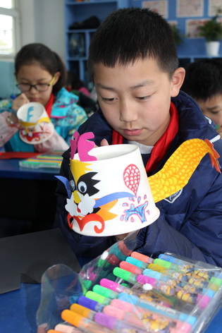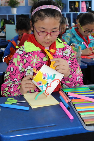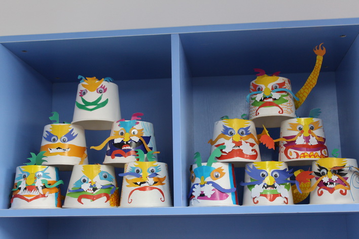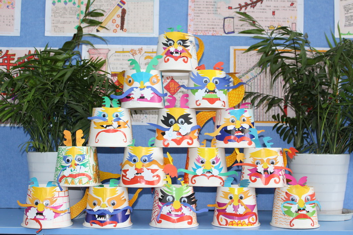 中国龙的形象非常威武。它那腾飞舞动的姿态,蕴含这巨大的生命力和一种积极向上的精神。我们中华民族就像一条腾飞的巨龙,我们炎黄子孙更把自己看作是龙的传人。这次五年级“龙的传人”活动把龙作为文化和历史的载体进行爱国主义教育。在美术课中以纸碗形体为设计元素进行制作,把纸碗变化成龙的形象。学会应用剪、穿插、粘贴、添画等方法进行龙的造型制作。