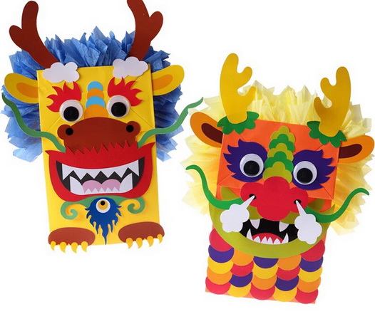 拓展:立体构成的形态只有通过材料加工才能实现。在制作中,巧妙的利用材料是成功的关键我们还可以利用废旧纸杯、牙膏盒、口袋、麦秆等材料制作。在制作中药根据龙的特征、材料的特点进行大胆夸张、概括等。可以采用剪、刻、折、粘贴、插、捆等方法制作龙的形象。希望同学们根据龙的造型特点和材料本身的特性,去积极探索、巧妙的运用方法去创作更多的龙,来装饰美化我们的环境