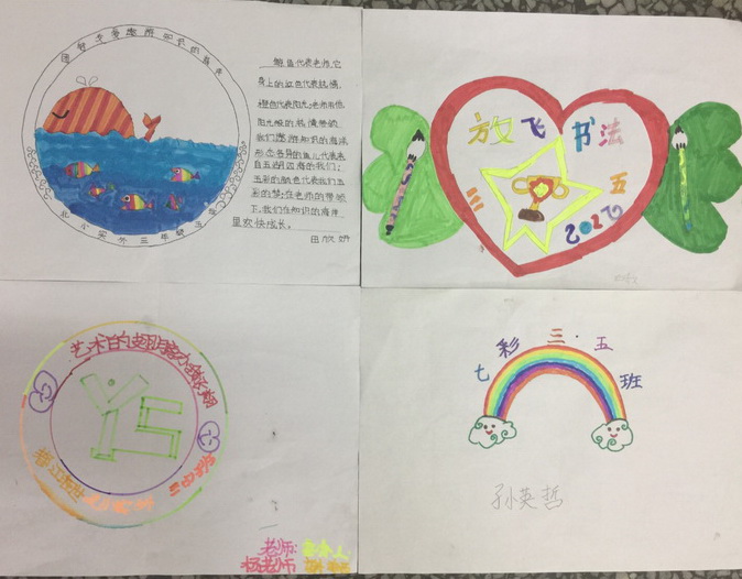 这一个个精美的班徽,有的孩子还将自己所制作的班徽的意义写在上面。这体现出了孩子们爱班级,爱同学的心,也展现出他们的活力四射,激情绽放。