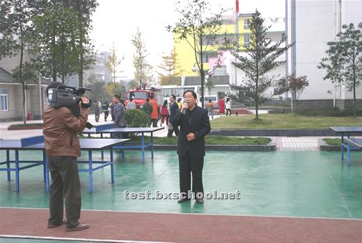消防演习圆满结束后,夏校长代表全校师生发言