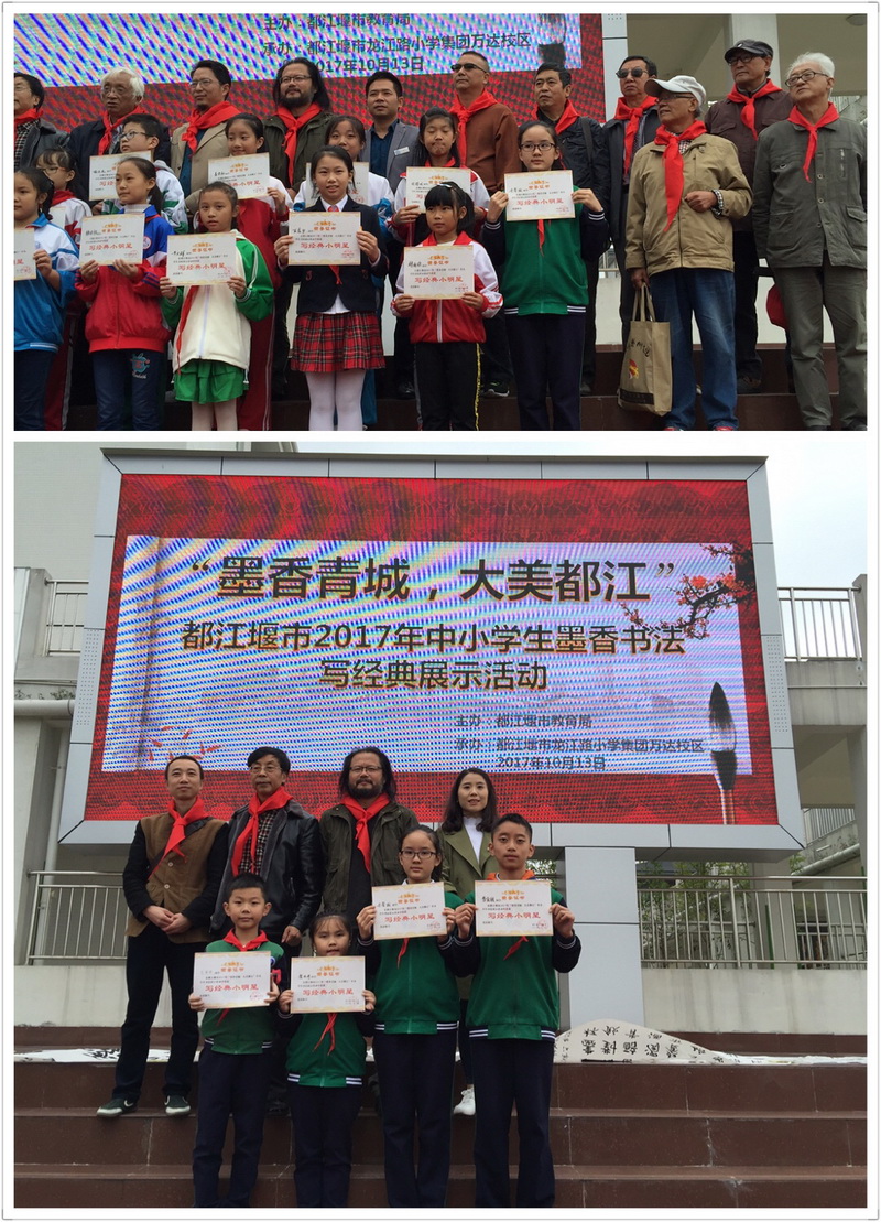 On October 13th, the exhibition activities of Classical Calligraphy and the ink calligraphy for elementary andmiddle school students from Dujingyan City in 2017 ,which was Sponsored by Dujiangyan Education Bureau and undertook by Wanda campus of Longjiang Road Primary SchoolDistrict Group in Dujiangyan successfully completed.