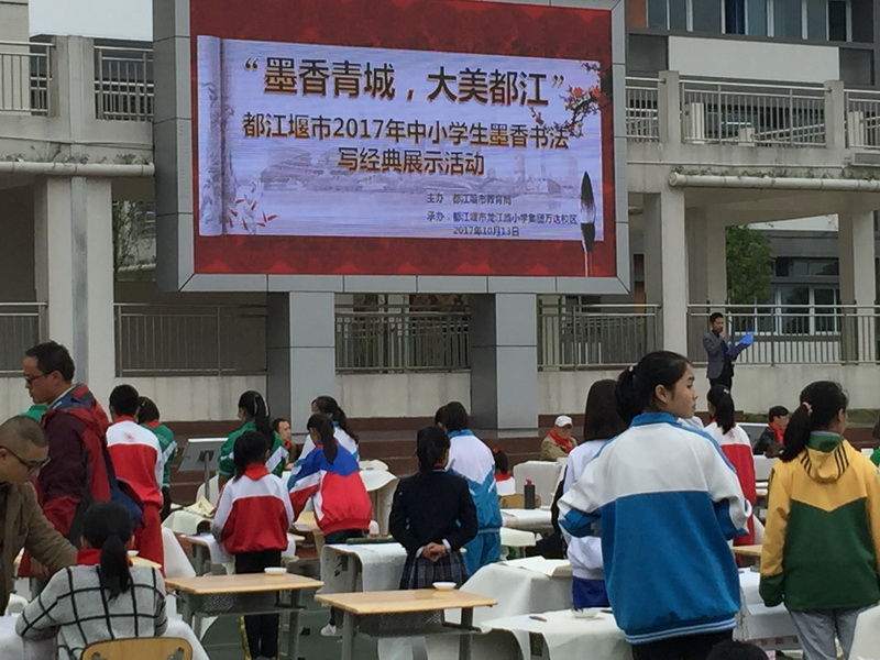 在写经典比赛中:我校参赛者用工整、规范、美观的书写展示了自己良好的书写功底,六年级学生宋馨园同学的软笔作品与三年级学生兰泽宇同学的硬笔作品,在现场就获得专家的一直称赞,最后经都江堰市书法专家组的评选,在都江堰市百幅作品中脱颖而出,赢得书法专家的赞赏,宋馨园、兰泽宇同学代表都江堰市中小学学生参加成都市2017年书法写经典活动。