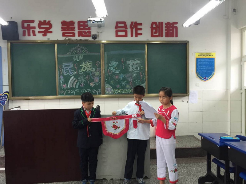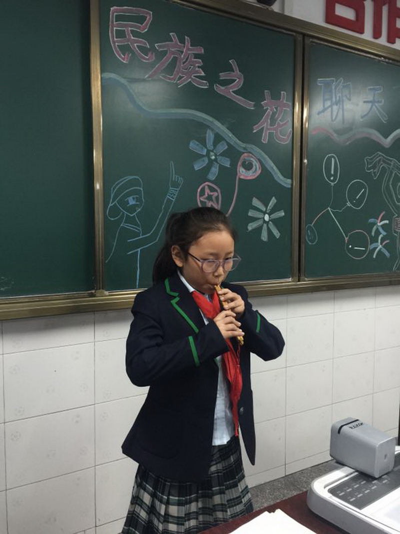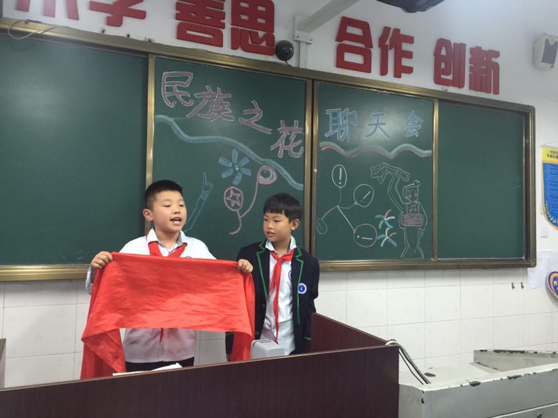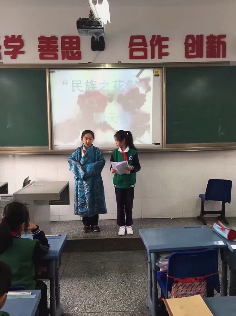 In October 2017, there was a special activity in Grade 4--“the national flower”chat meeting.Before class, the students collected many information about ethnic minorities and introduced their national traditions and cultures in their own unique ways.