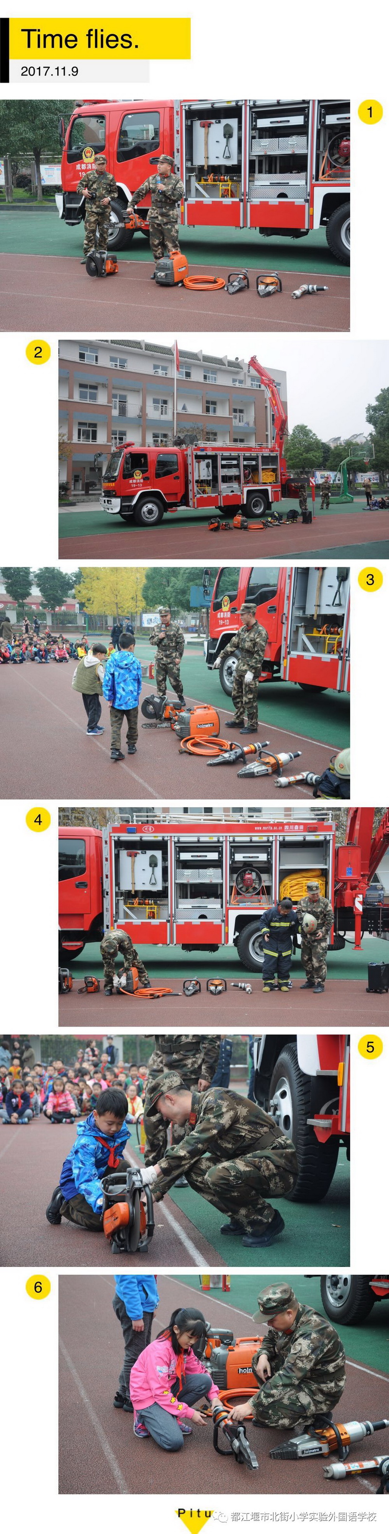 11月8日上午,消防官兵将消防车驾驶到操场,为同学们揭开消防车“肚子”里的大秘密。