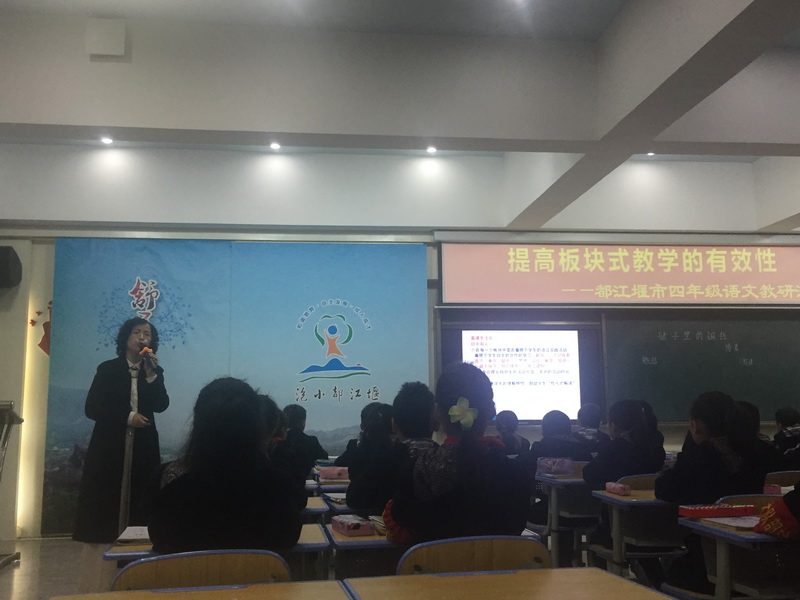 语文教学中,板块式教学模式是一个好的教学方法,它思路清晰,板块分明,使教学的清晰性和能动性都能得到鲜明的表现。 In Chinese teaching, the blackboard teaching mode is a good teaching method. It has clear thinking and clear plate. It makes the teaching clear and dynamic can be clearly reflected. 周五,我校四年级语文组老师参加了我市四年级语文教研活动。本次活动由教研室任晓英老师做讲座,三位老师呈现《毽子里的铜钱》第一课时,《毽子里的铜钱》第二课时及《井底之蛙》。 On Friday, the fourth grade Chinese teachers took part in the fourth grade Chinese teaching and research activities. This activity is taught by the teaching and research office Ms Ren Xiaoying.