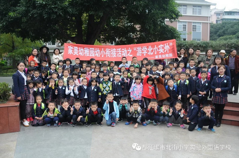 2017年11月8日,都江堰市家美幼稚园的小朋友们在家长和老师的陪同下,走进都江堰市北街小学实验外国语学校,近距离地接触小学生活。