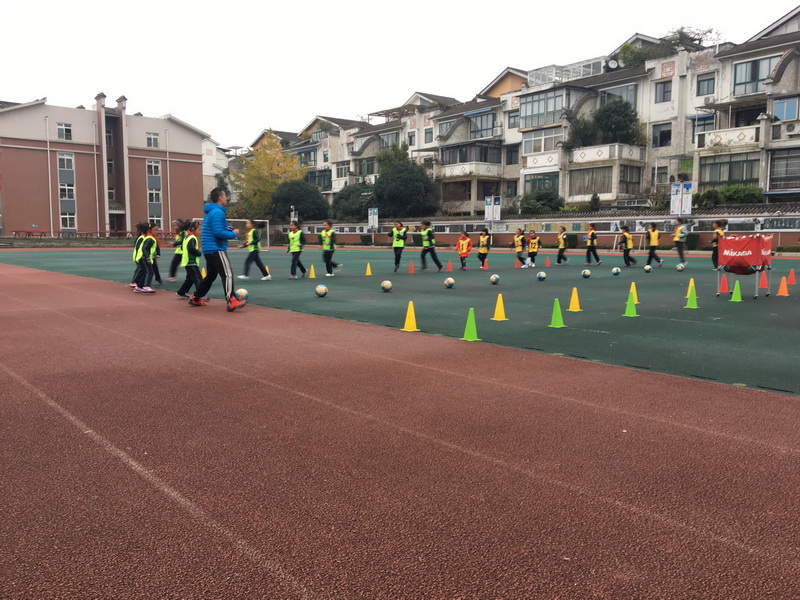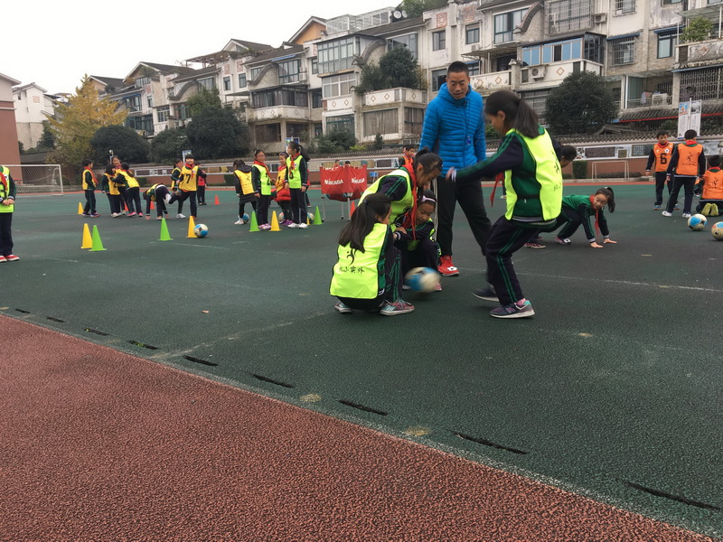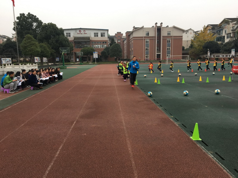 Wang Kebing showed the class “Dribbling Football with Instep”. First, Mr. Wang led the students follow music and do dynamic and passionate warm-up activities and special action exercises. Then he took the students to complete the lively and interesting football lesson from simple to difficult. Mr. Wang’s movements were precise and language was refined. So the students were full of passion and participated in various exercises actively. After this lesson, students learned how to dribble football with instep and their comprehensive quality and cooperative learning ability have been effectively cultivated.