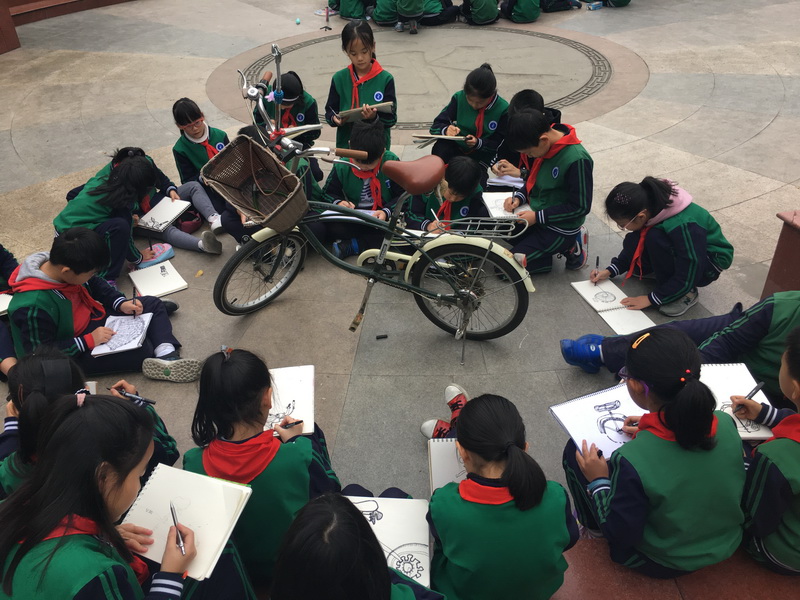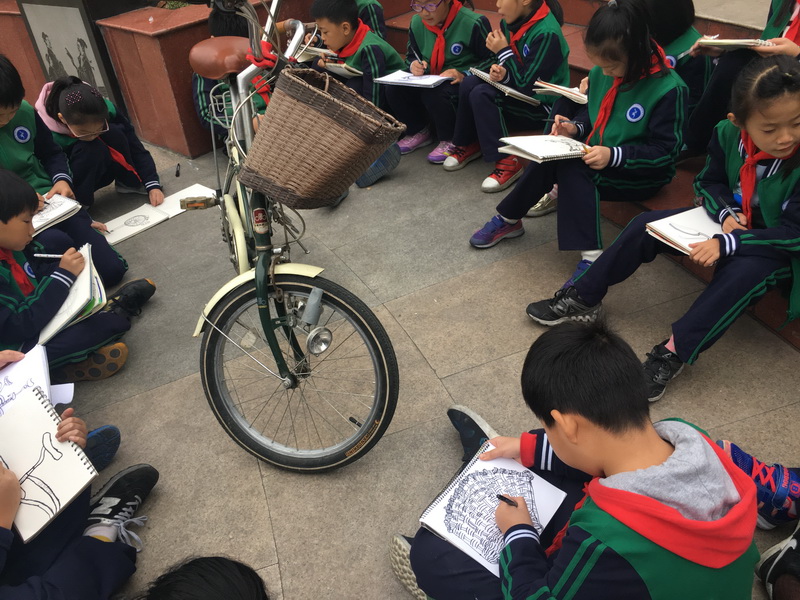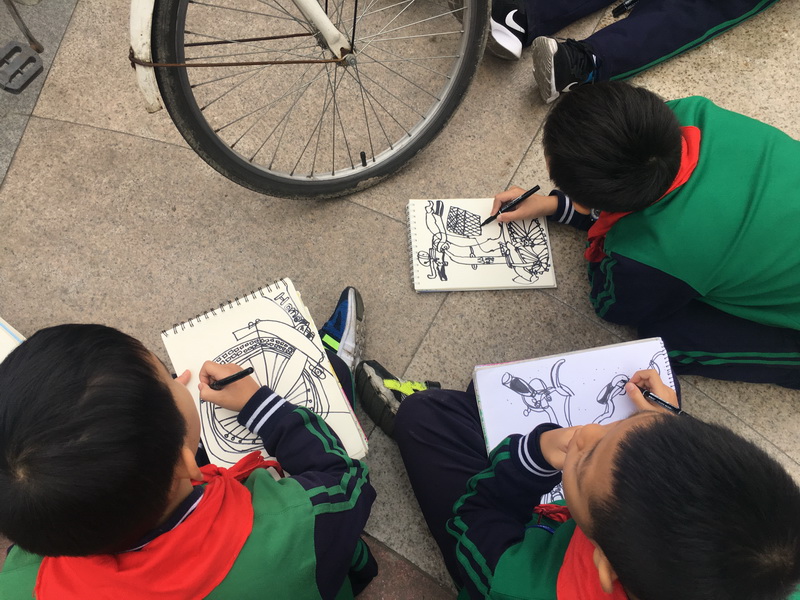 上周,我校三年级的学生利用美术课的时间进行了户外自行车写生实践活动。室外写生实践是小学美术教学中的一个重要环节,写生是直接面对对象进行描绘的一种绘画方法,多采用一边观察,一边用简洁的线条把被表现的实物的主要特征描绘出来,是初学者绘画表现和创作的重要手段之一。