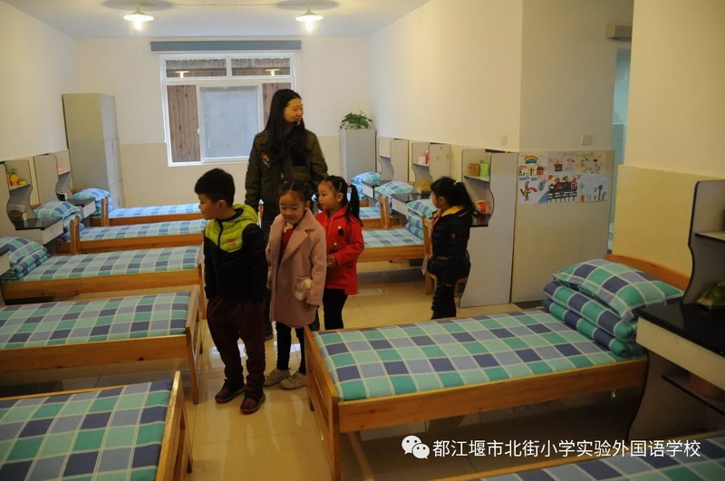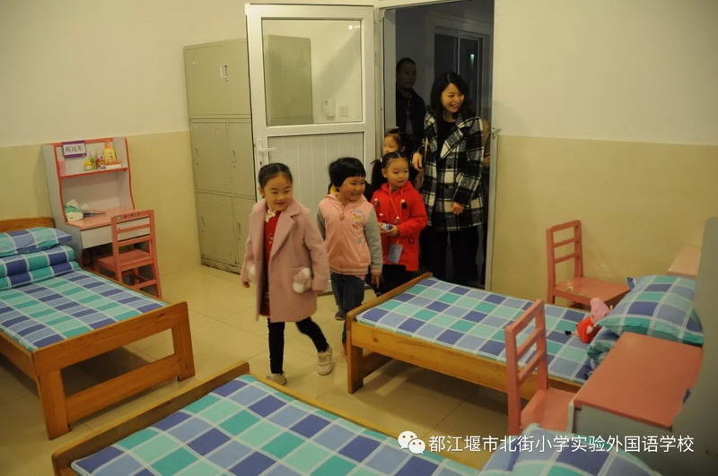 然后,小朋友们来到了哥哥姐姐们的宿舍。原来小学的宿舍是这样的,和幼儿园的宿舍一样温馨,寝室里还有和蔼的生活老师。