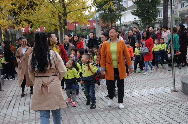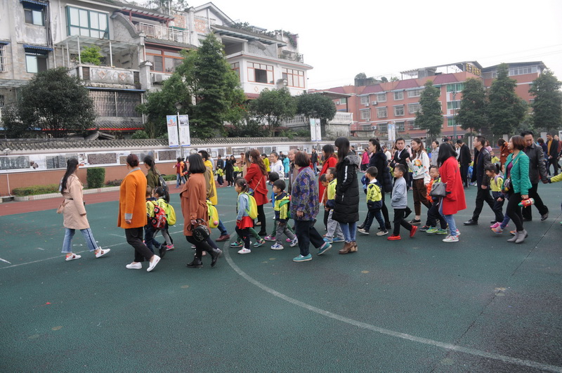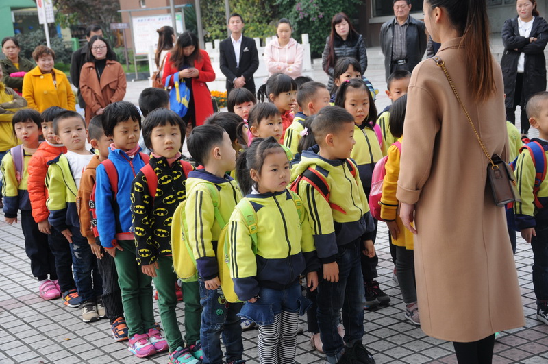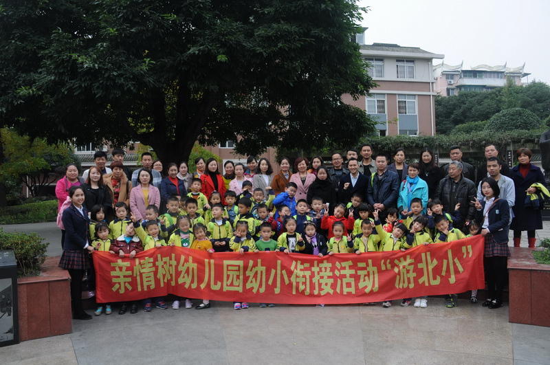 2017年11月14日,都江堰市亲情树幼儿园的小朋友们在家长和老师的陪同下,走进都江堰市北街小学实验外国语学校,近距离地接触小学生活。