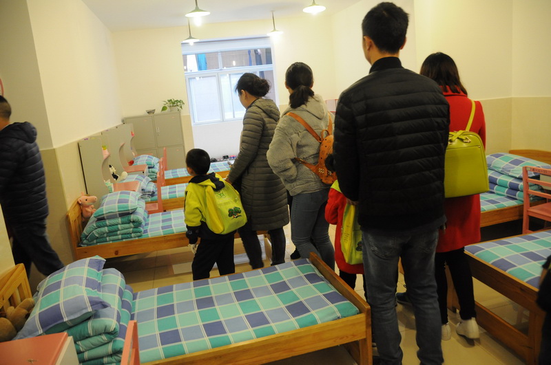 Then,the kids came to the dormitory. Both the kids and parents were amazed at the clean and tidy bed.