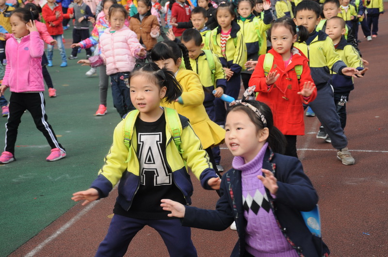 时间过得真快,大课间时间到了,小朋友们也提前来到操场。在体育老师的带领下,小朋友们认真地做着操,俨然一副小学生的模样。
