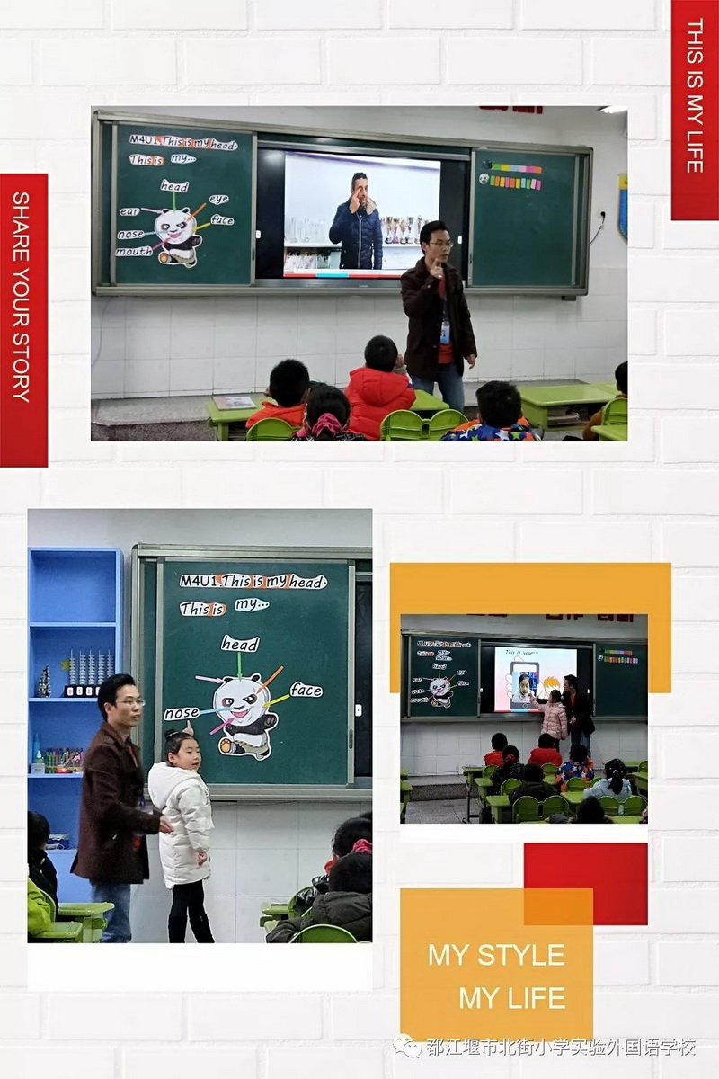 李书老师的教学内容为新标准英语一起第二册This is my head.教师以小熊猫Panpan学习各种“武功”技能最终打败坏蛋Kai为整堂课的基调,使学生兴趣盎然地学习本课的重点单词及句型。