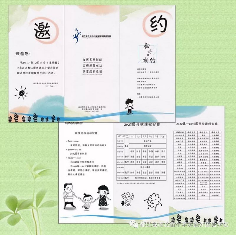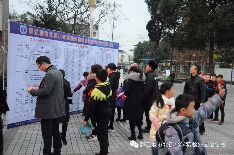 2017年12月8日,都江堰市北街小学实验外国语学校2017-2018年度教学开放日以热切的姿态,全新的面貌,迎来了2023届家长、2024届拟就读我校的新生家长计900余人。