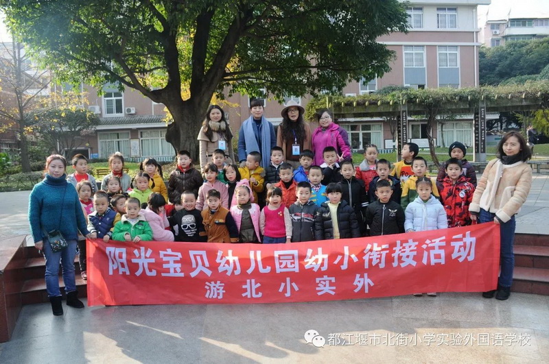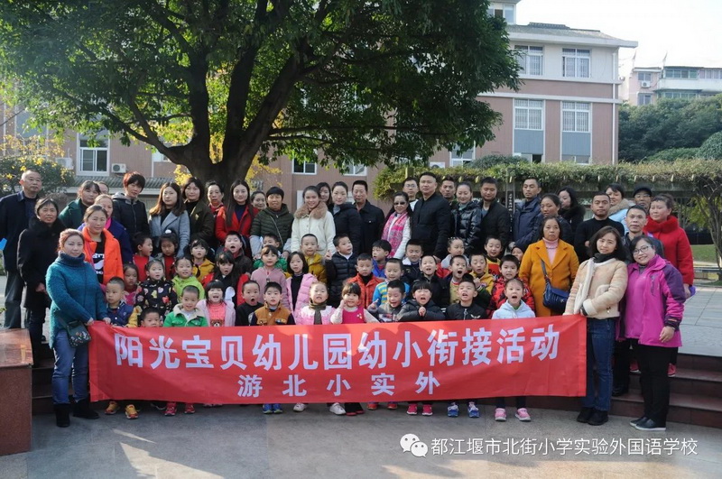 2017年12月4日,都江堰市阳光宝贝幼儿园的小朋友们在家长和老师的陪同下,走进都江堰市北街小学实验外国语学校,近距离地接触小学生活。