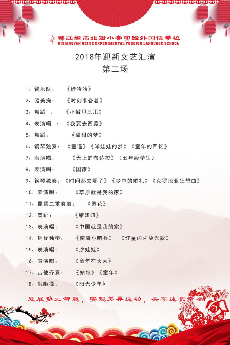 The fruitful 2017 has gone away,the 2018 of auspicious is coming.Children in Beijie experimental Foreign Language School are singing and dancing.Welcome the arrival of the new year.