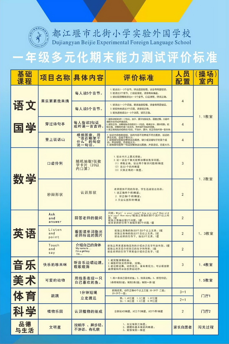 阳光和孩子们的快乐笑声一起洒满校园,在减轻小学生课业负担和学习压力的道路上,北小实外一直在不断前行。2017年夏季期末一年级学生经历这样的考试,得到孩子们的喜欢,家长们和社会的一致认可,今年年扩展到一、二年级,按照学校规划,明年一、二、三年级均采用这种考试方式,给孩子们一个轻松、幸福的童年。