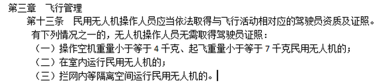 The weight of our UAV is less than 4 kilograms, so the operator does not have to get the driver's license according to the regulations