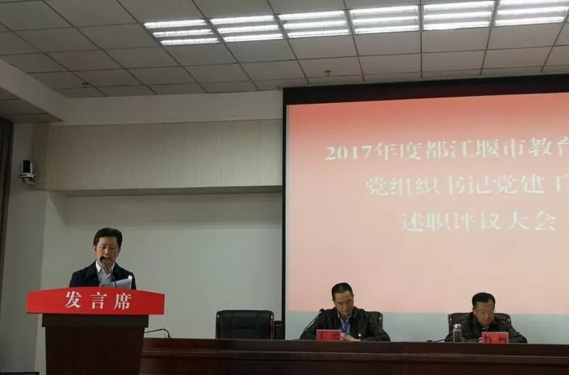 近年来我校坚持“党建引领促学校发展”的工作思路,在3月15日都江堰市教育系统党组织书记党建工作述职评议大会上,我校支部书记马长俊同志作为都江堰市民办学校党组织代表进行现场述职,党建引领学校发展的工作思路及成效得到了教育局局长竹柯同志及教育局机关党委书记王逊同志的肯定。