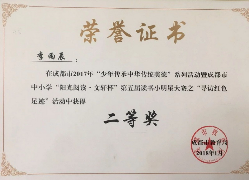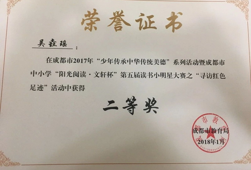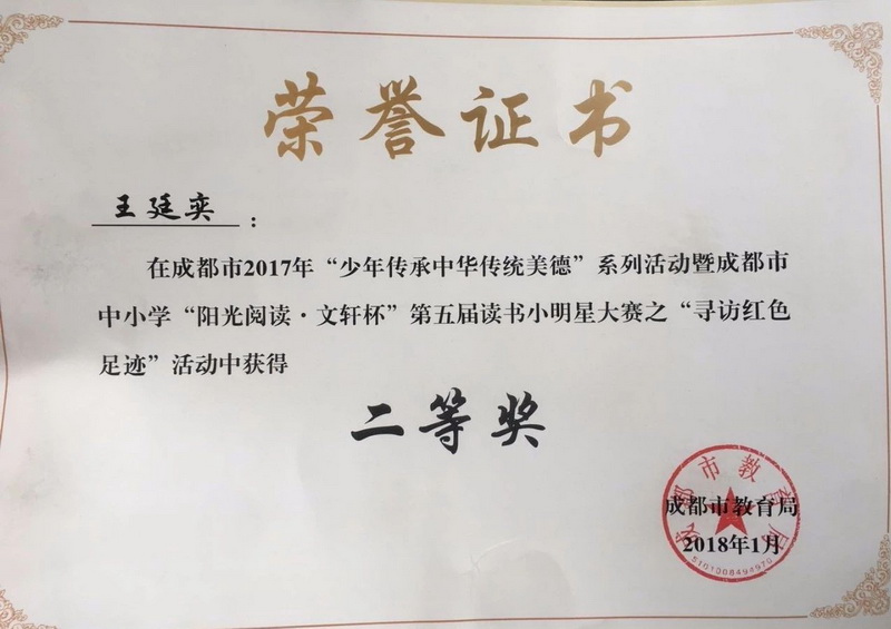 Four studentsfrom our school won the second prize of Chengdu, and two won the third prize.