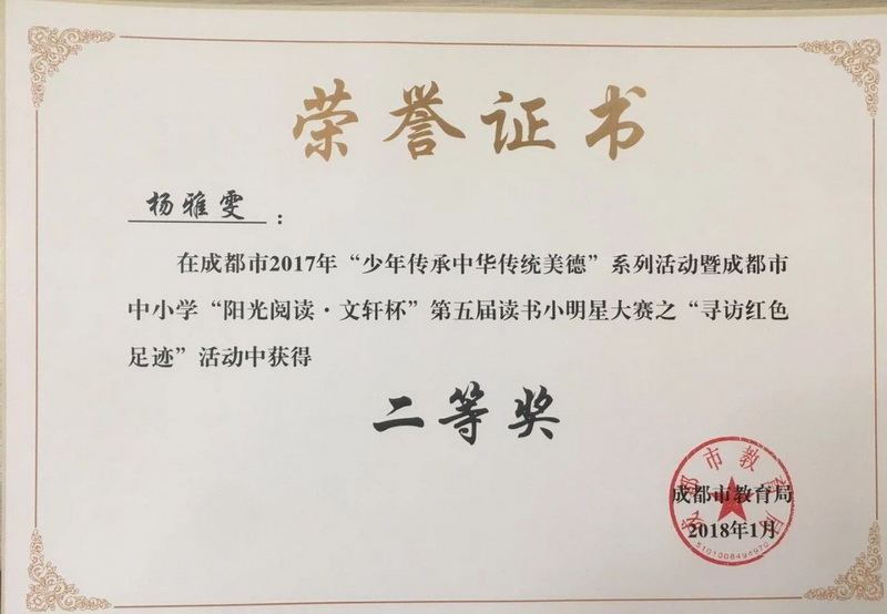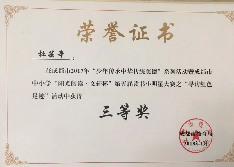 传承美德获成都市奖励(Heritage of Virtue Rewarded by Chengdu) |