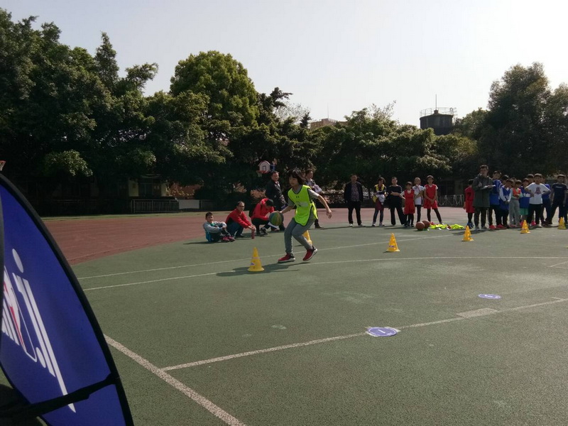 4月1日上午,2018 Jr. NBA校园篮球技巧挑战赛成都赛区在川师大附属实验学校鸣笛开赛。